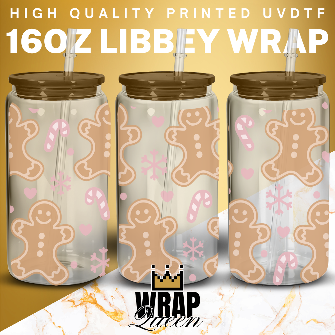 Christmas Gingerbread Man 2 UV DTF 16oz Glass Cup Wrap