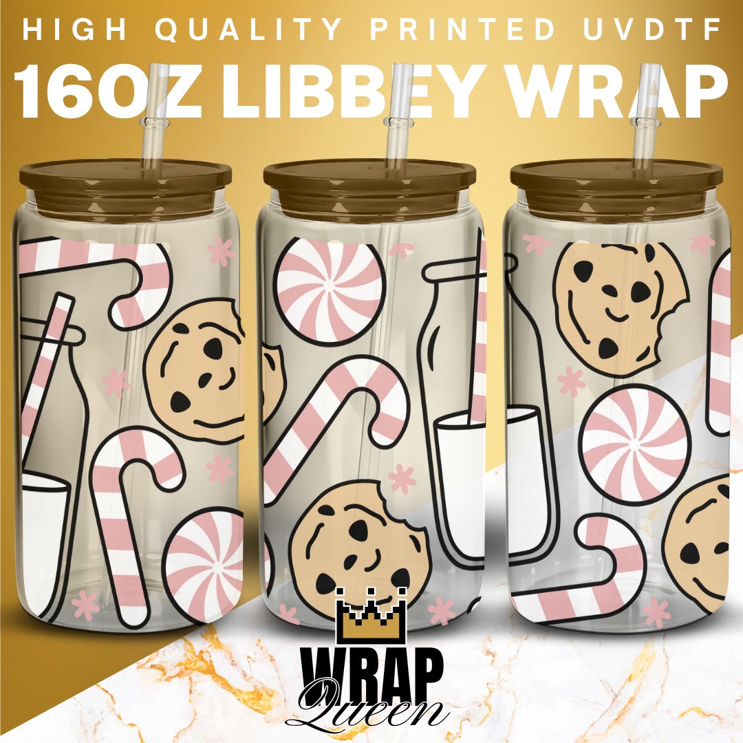 Christmas Santas Cookies and Milk PINK UV DTF 16oz Glass Cup Wrap