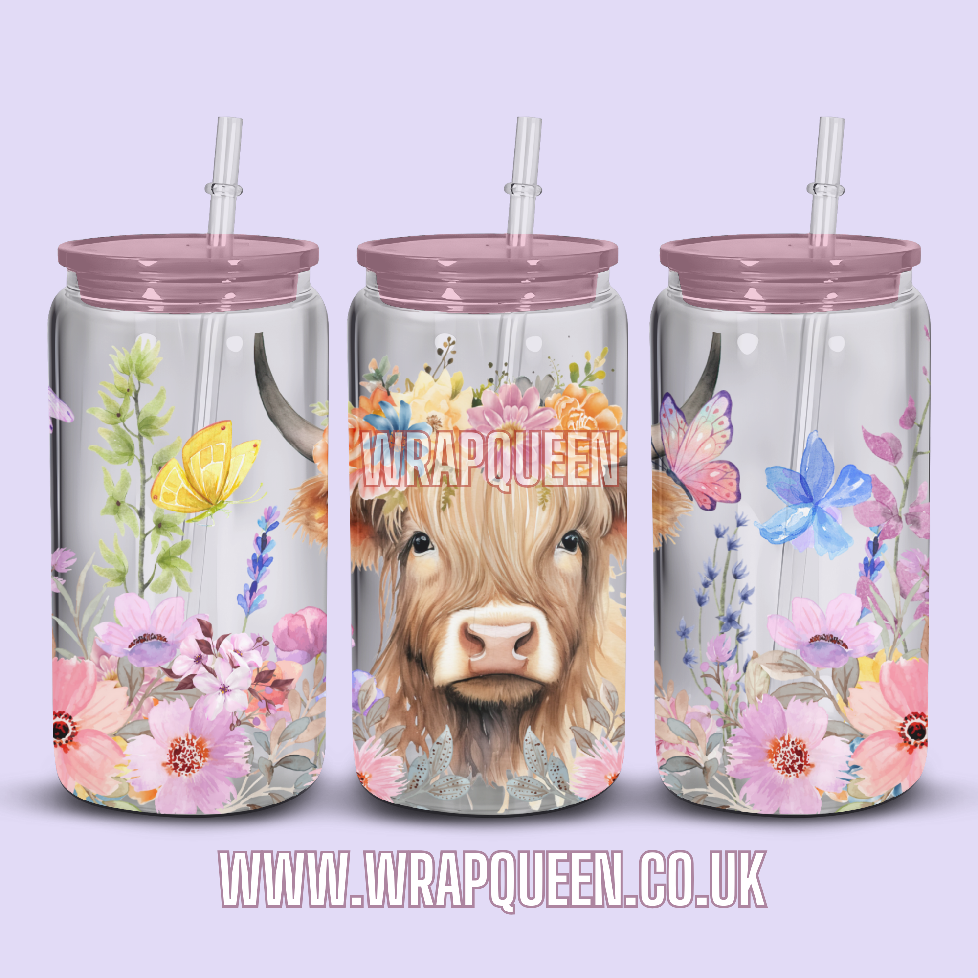 Highland Cow Animal UV DTF 16oz Glass Cup Wrap