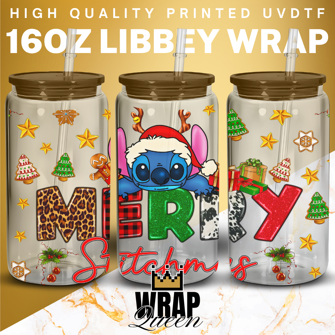 Merry Stitchmas Experiment 626 UV DTF 16oz Glass Cup Wrap