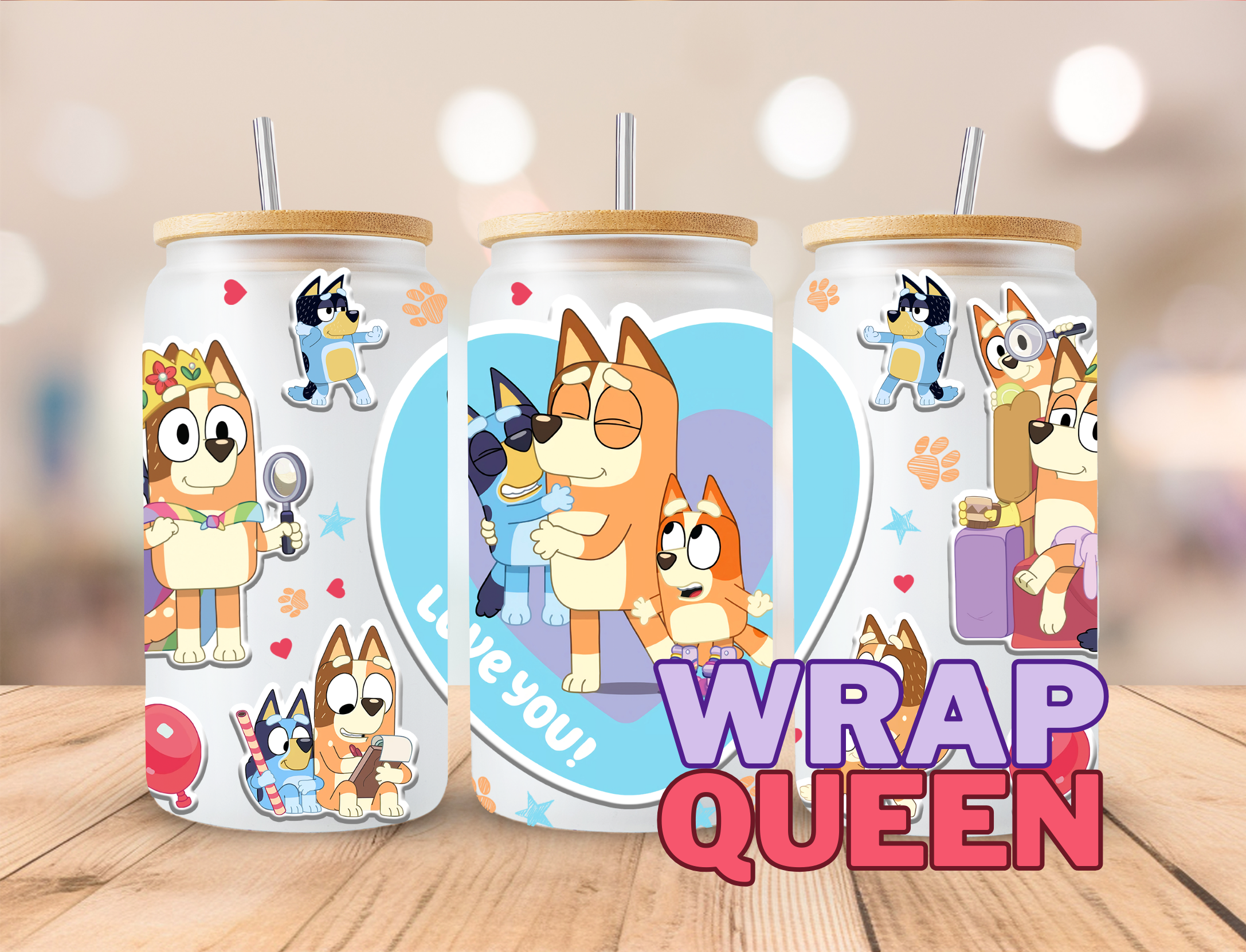 Australian Cattle Dog with Friend Heart 5 UV DTF 16oz Glass Cup Wrap